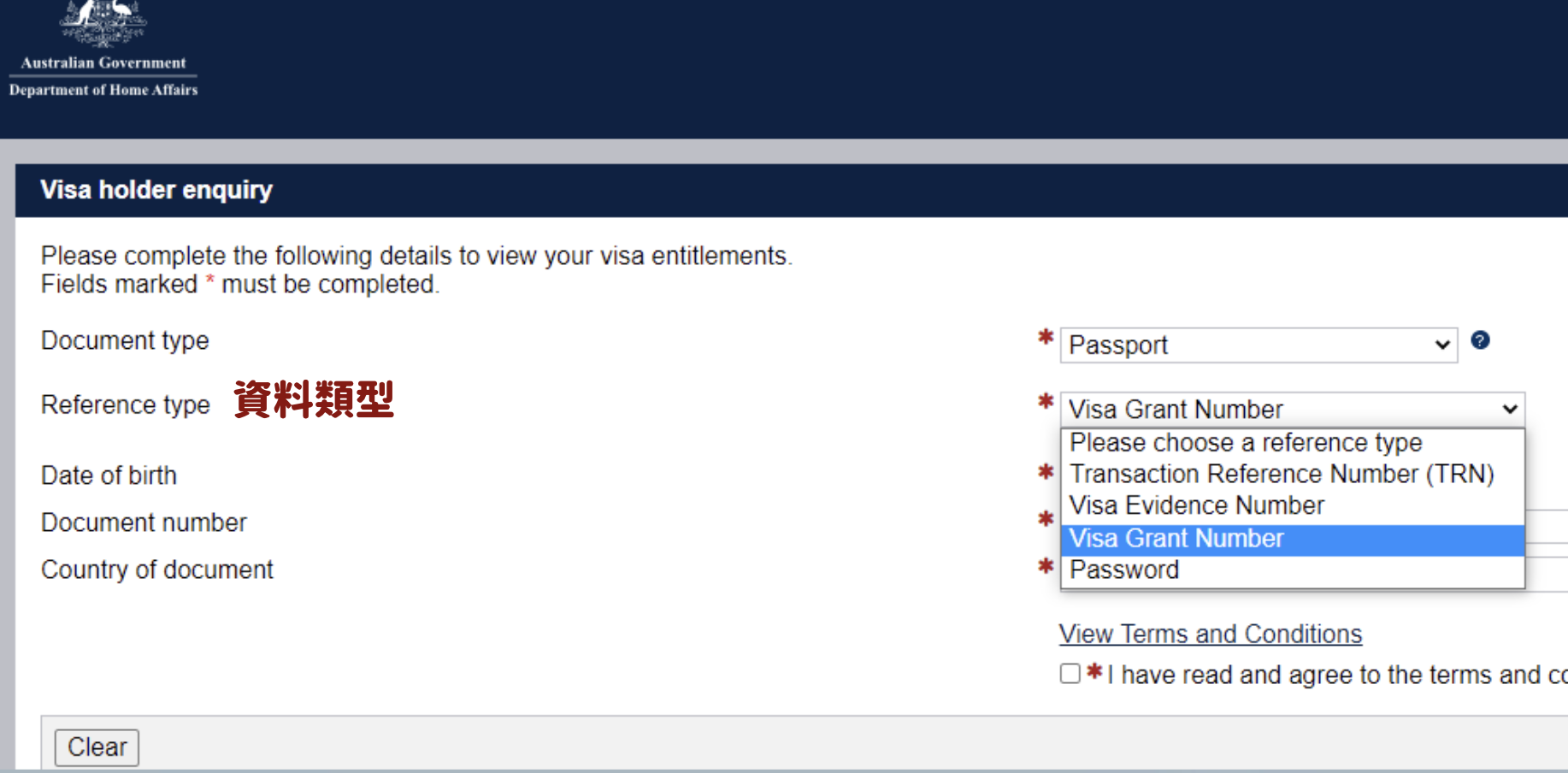 開始填寫相關信息,一定要確保信息是完全正確之後,再提交【資料類型通常是選擇 VISA GARANT NUMBER 以及 TRN】