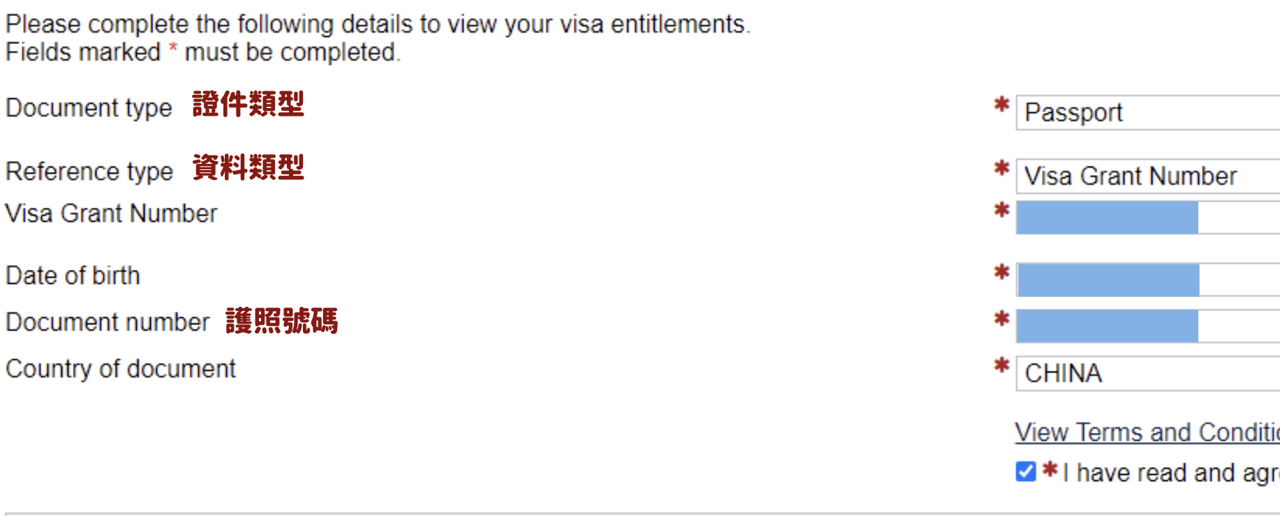 實際查詢畫面如下,都填寫完畢後,就可以提交囉!( 以 VISA GARANT NUMBER 做舉例)